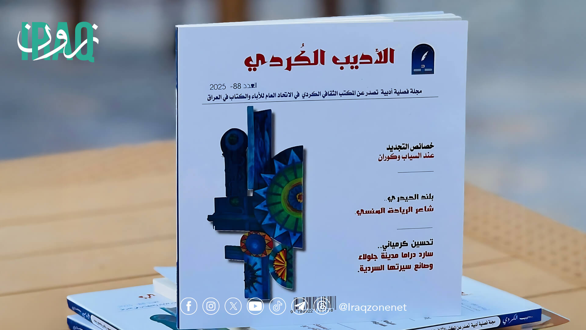 أصدر المكتب الثقافي الكردي في الاتحاد العام للأدباء والكتاب في العراق العدد (٨٨) لسنة ٢٠٢٥ من مجلة “الأديب الكردي”، والذي جاء في (١٩٢) صفحة وباللغتين العربية والكردية، متضمناً طيفاً واسعاً من الموضوعات في أجناس أدبية متعددة.   وفي كلمة افتتاحية لرئيس التحرير الشاعر ئاوات حسن...