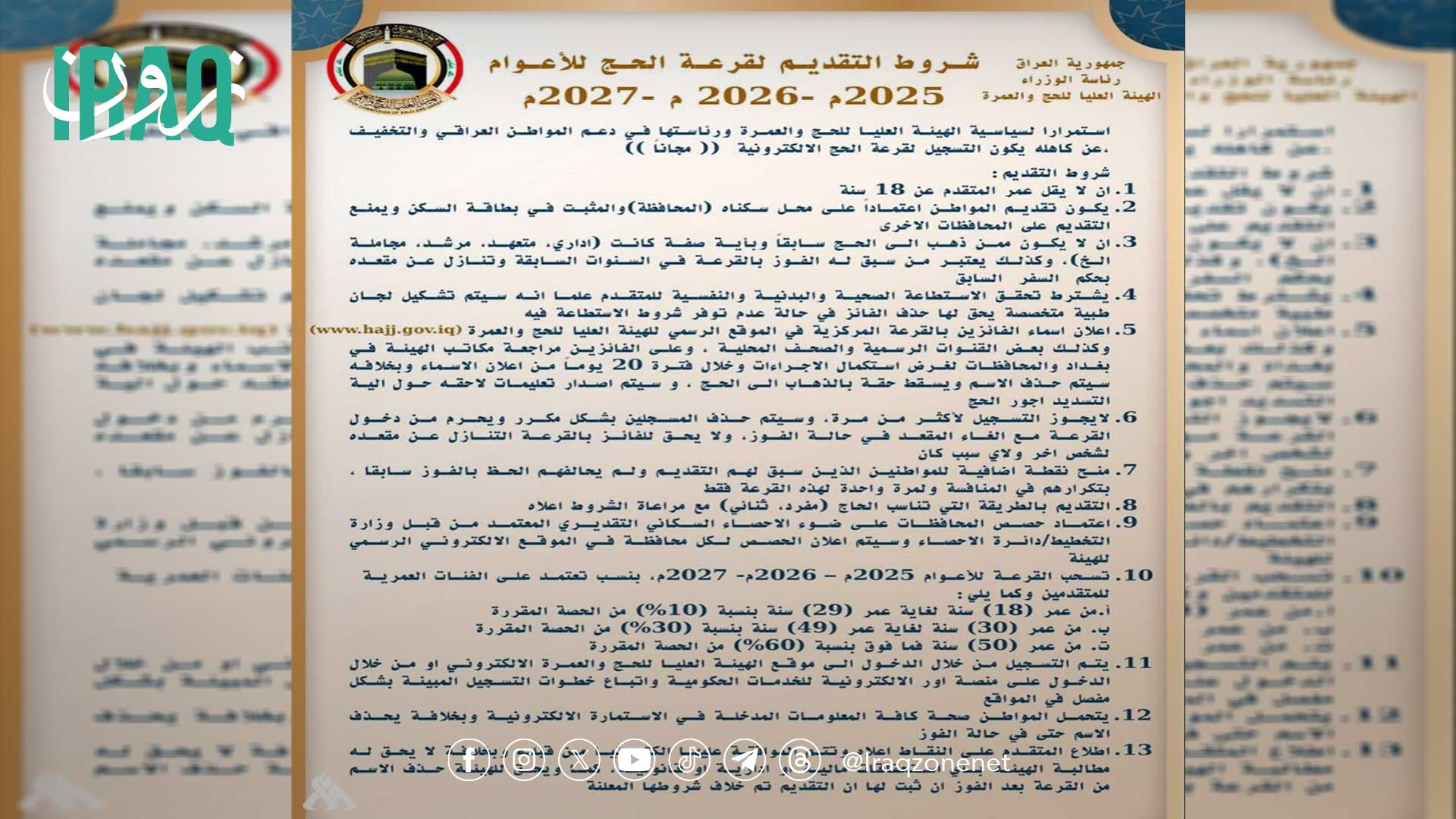 أعلنت هيئة الحج والعمرة، فتح باب التسجيل الإلكتروني لقرعة الحج بشكل مجاني، فيما حددت مجموعة من الشروط للمتقدمين على التسجيل. وقالت الهيئة: إن الشروط والاحكام التقديم على قرعة الحج، هي ان لا يقل عمر المتقدم عن 18 سنة، ويكون تقديم المواطن اعتماداً...